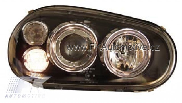 Přední světla Design na VW Golf 4 r.v. 98-03, černé pozadí, integrovaný blinkr. Homologace E. Cena je za pár.