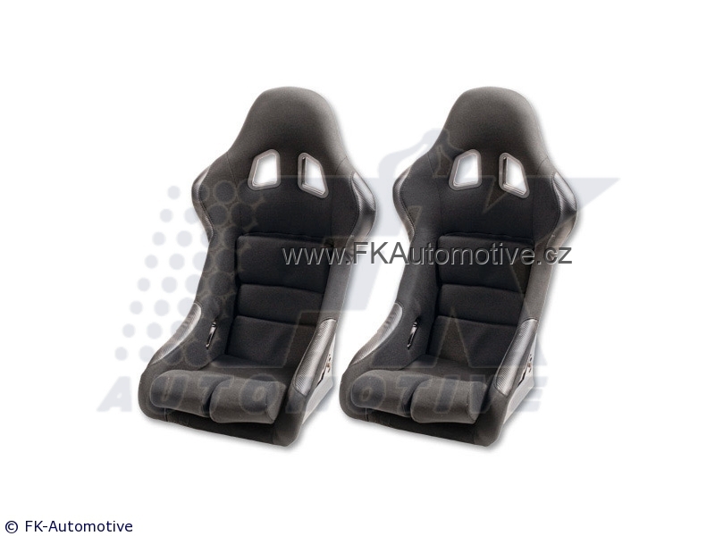 Sportovní sedačky pravá + levá, černá barva, pevná-nesklopná, kombinace látky a kůže. Cena je za pár. Délka konzole 365mm.