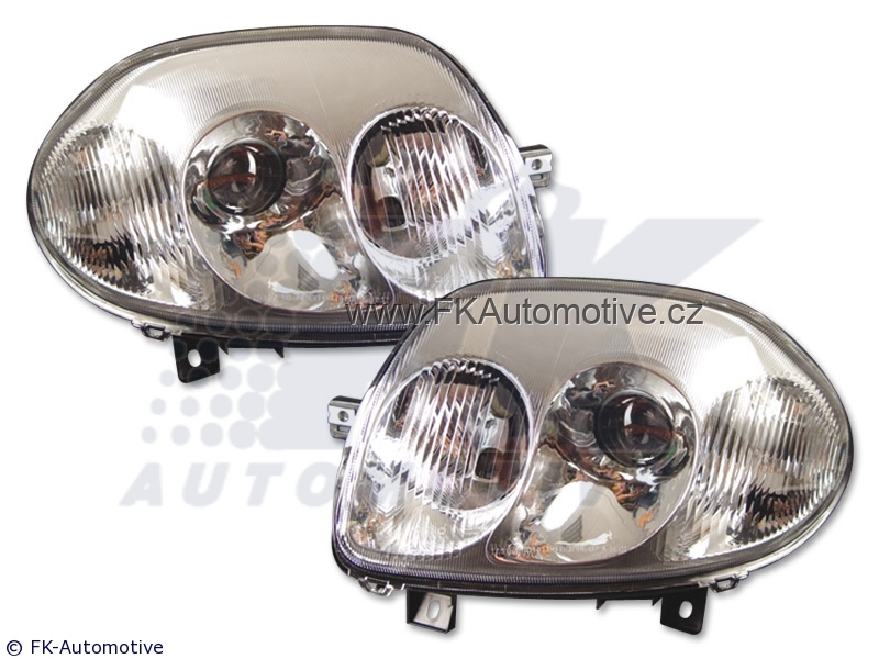 Přední světla Angel Eyes na Renault Clio B r.v. 98-01, chromové pozadí, integrovaný blinkr. Homologace E. Cena je za pár.