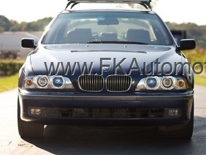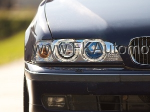 Přední světla Angel Eyes na BMW E39 r.v. 95-00, chromové pozadí, pro el. naklápění. Homologace E. Cena je za pár.