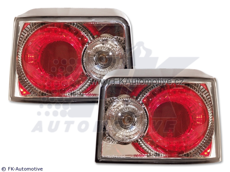 Zadní tuningová světla na Peugeot 205 typ 20C/D r.v. 90-95, chromové pozadí, homologace E. Cena je za pár.