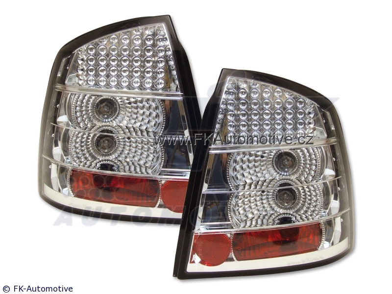 Zadní tuningová světla LED na Opel Astra G typ 3/5dvéř. r.v. 98-03, chromové pozadí, homologace E. Cena je za pár.