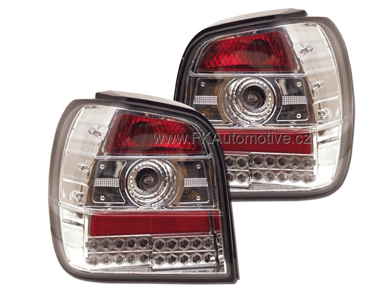 Zadní tuningová světla LED na VW Polo 6N r.v. 95-98, chromové pozadí, homologace E. Cena je za pár.