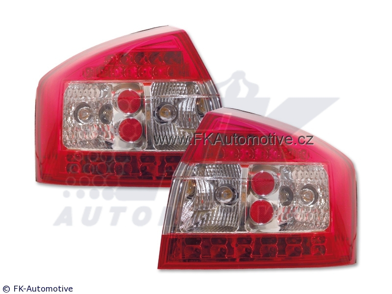 Zadní tuningová světla LED na Audi A4 typ 8E Limousine r.v. 01-04 červeno-čiré pozadí, homologace E. Cena je za pár.