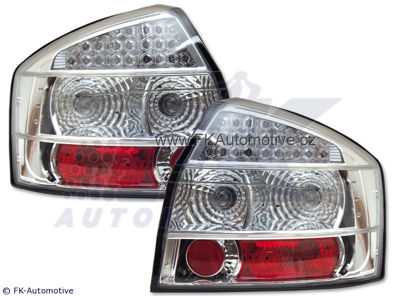 Zadní tuningová světla LED na Audi A4 typ 8E r.v. 01-03 chromové pozadí, homologace E. Cena je za pár.