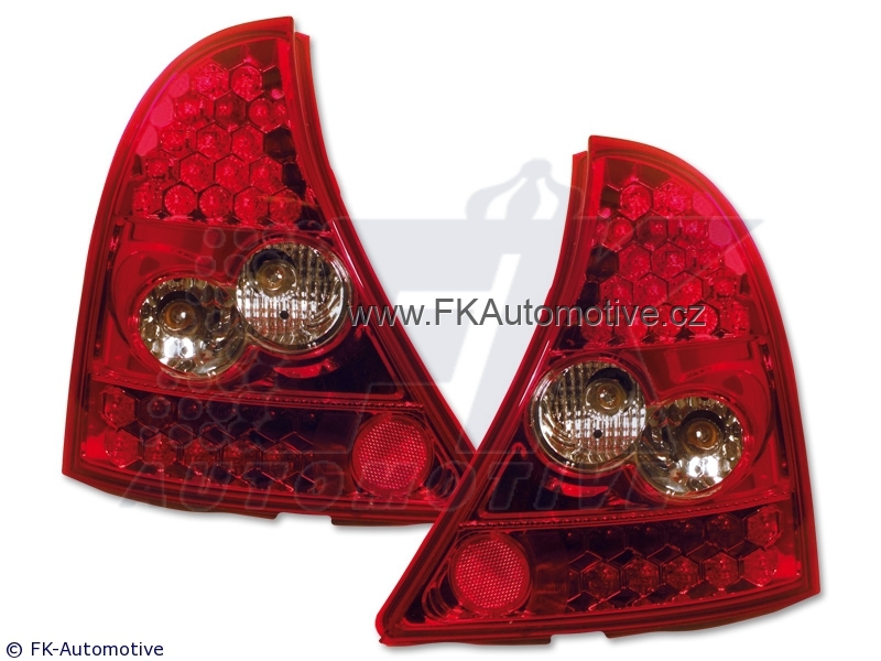 Zadní tuningová světla LED na Renault Clio B r.v. 98-04 červeno-čiré pozadí, homologace E. Cena je za pár.