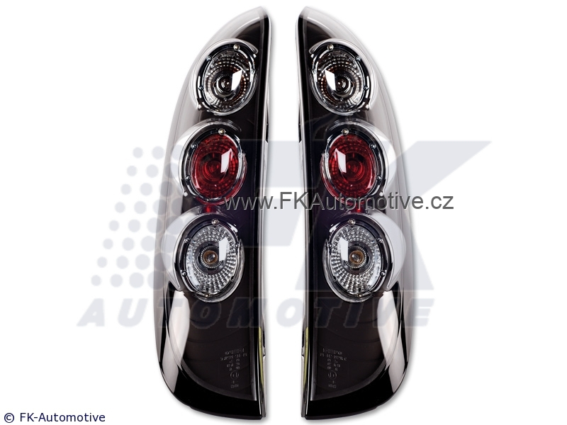 Zadní tuningová světla na Opel Corsa C typ 3/5dvéř. r.v. 00-06, černé pozadí, homologace E. Cena je za pár.