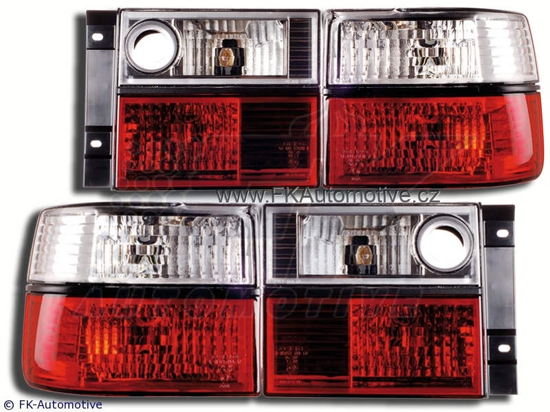 Zadní tuningová světla na VW Vento r.v. 92-98, krystalově červeno-bílé pozadí, homologace E. Cena je za pár.