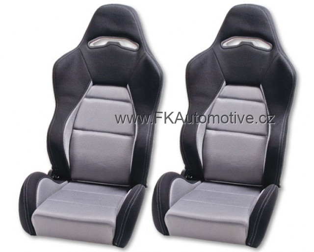 Sportovní sedačky pravá + levá strana, černo-šedá barva, sklopná-polohovací, látková. Cena je za pár. Délka konzole 345mm.