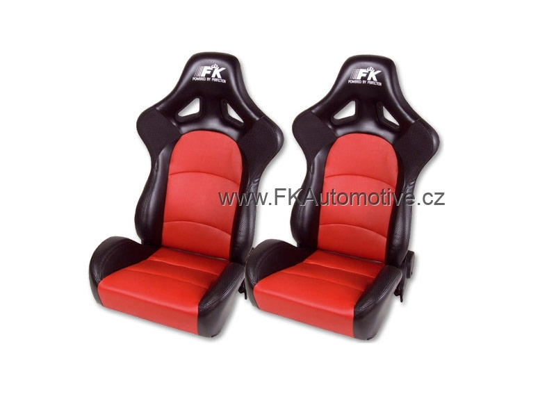 Sportovní sedačky pravá + levá strana, červeno-černá barva, sklopná-polohovací, polokůže, zadní díl laminátová skořepina. Cena je za pár. Délka konzole 350mm.