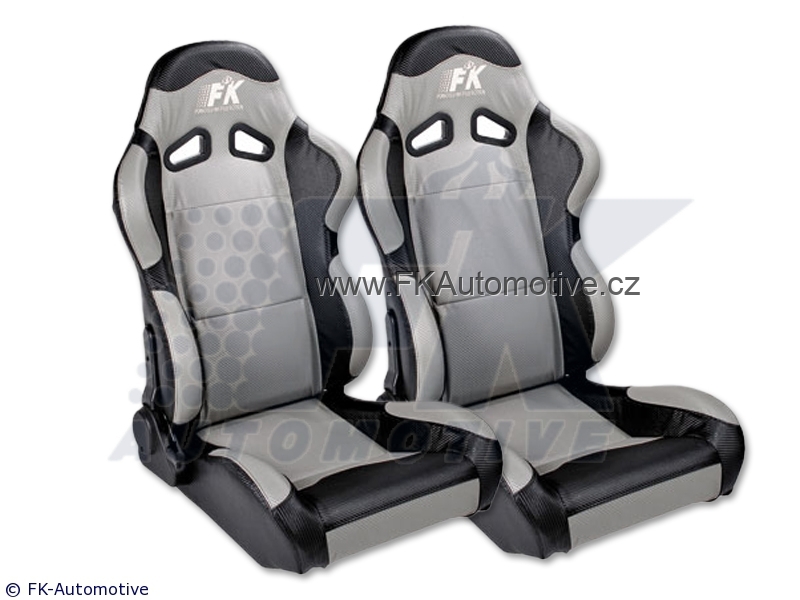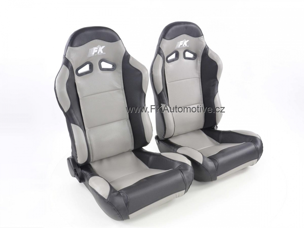 Sportovní sedačky levá + pravá strana, šedo-černá barva, sklopná-polohovací, kožená-polokůže. Cena je za pár. Délka konzole 400mm.