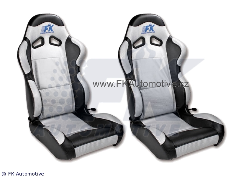 Sportovní sedačky levá + pravá strana, stříbrno-černá barva, sklopná-polohovací, kožená-polokůže. Cena je za pár. Délka konzole 345mm.