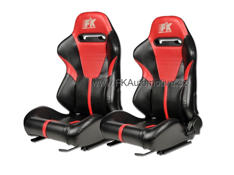 Sportovní sedačky levá + pravá strana, červeno-černá barva, sklopná-polohovací, kožená-hladká. Cena je za pár.