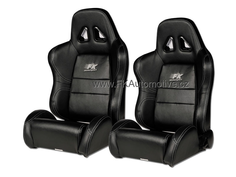 Sportovní sedačky levá + pravá strana, černá barva, sklopná-polohovací, kožená-polokůže se stříbrných prošíváním. Cena je za pár.