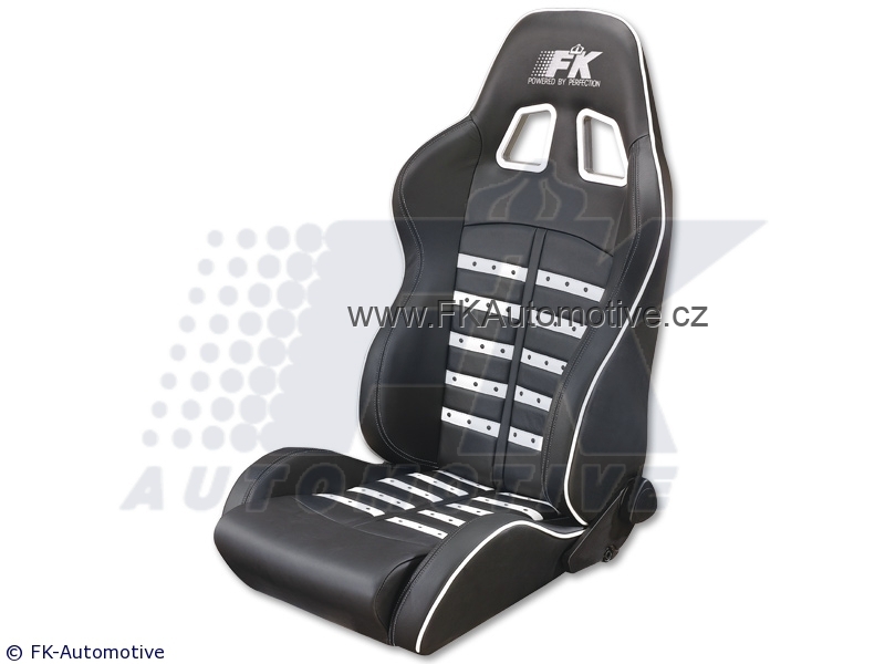 Sportovní sedačky levá + pravá strana - oboustranně použitelná, černo-bílá barva, sklopná-polohovací, pravá kůže. Cena je za pár. Délka konzole 345mm.