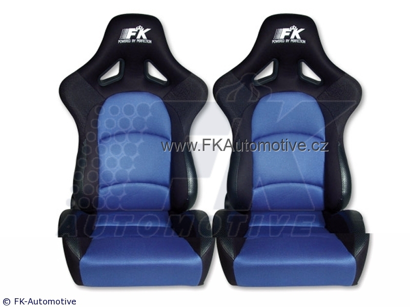 Sportovní sedačky levá + pravá strana, modro-černá barva, sklopná-polohovací, látková. Cena je za pár. Délka konzole 350mm.