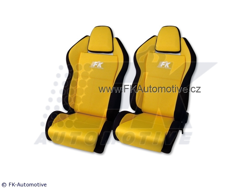 Sportovní sedačky levá + pravá strana, žluto-černá barva, sklopná-polohovací, látková. Cena je za pár. Délka konzole 350mm.