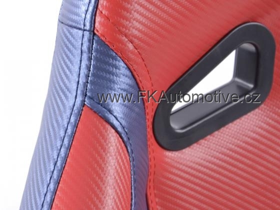 Sportovní sedačky Spacelook, levá + pravá strana, červeno-modrá barva, sklopná-polohovací, polokůže, karbonový vzhled, velmi dobře omyvatelná. Cena je za pár. Délka konzole 400mm.