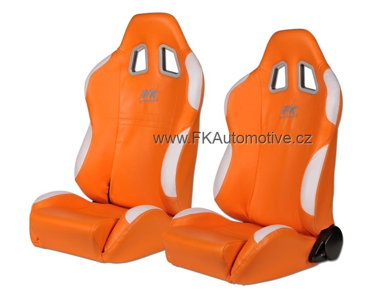Sportovní sedačky levá + pravá strana, bílo-oranžová barva, sklopná-polohovací, látková. Cena je za pár.