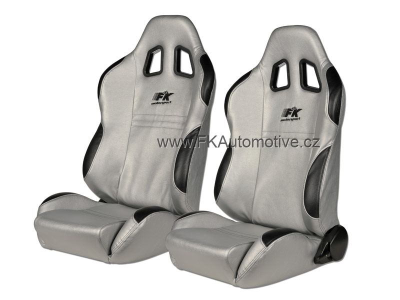 Sportovní sedačky levá + pravá strana, stříbrno-černá barva, sklopná-polohovací, látková. Cena je za pár.