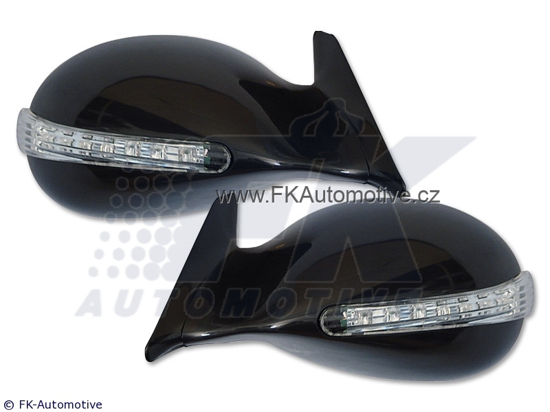 Sportovní zrcátka, elektrické ovládání 3 dráty, s Led blinkrem + vyhřívání, z PVC, černé, homologace E, zrcátka jsou universální, k danému typu vozu nutné zakoupit adaptér. Cena je za pár.