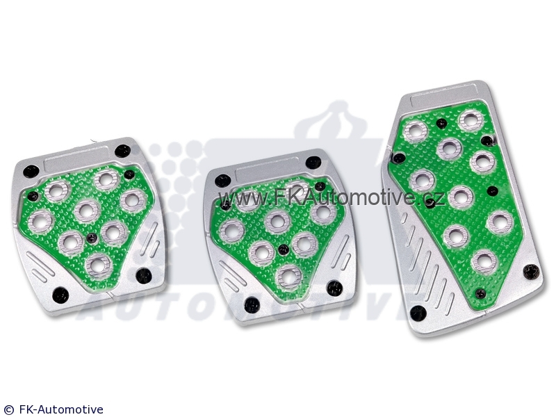 Sportovní hliníkové pedály, universální, zelený design, podsvícené. Zapojení do zapalovače. Cena je za sadu.