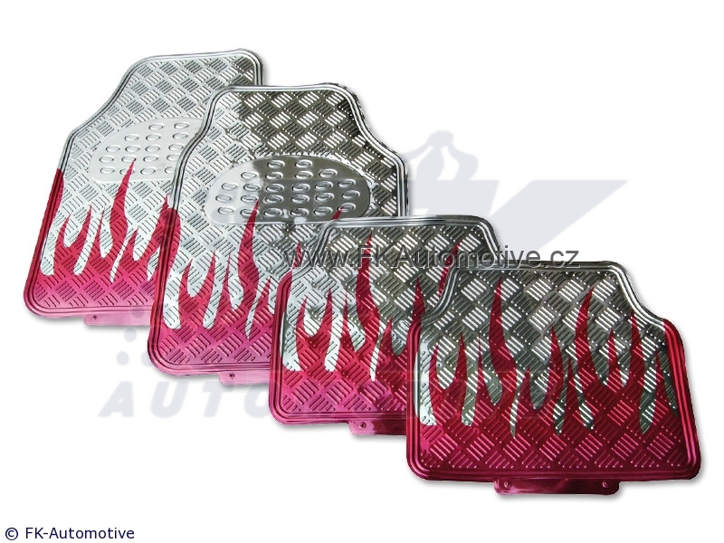 KoberceGumové tuning koberce, červené plameny, chromový design, materiál guma 2x přední a 2x zadní, universální. Cena je za sadu. |