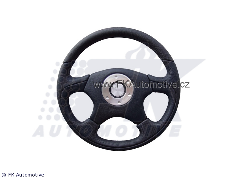 Sportovní volant, 4 ramena, pravá kůže, černý design, průměr 350mm.