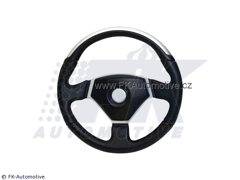 Sportovní volant, pravá kůže, černý design, ergonomický tvar, průměr 350mm.