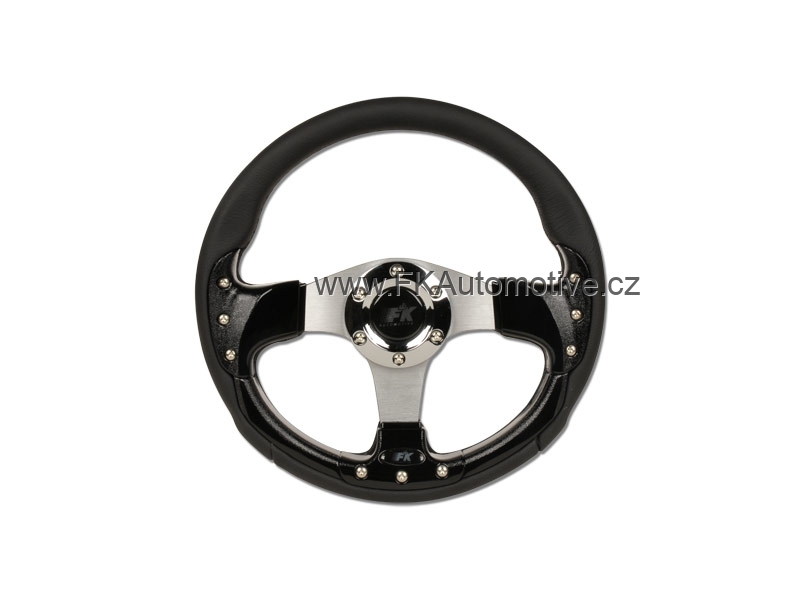 Sportovní volant, černá kůže + kovový design, průměr 320mm.
