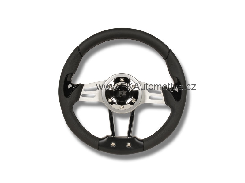Sportovní volant, černá kůže + kovový design, průměr 330mm.