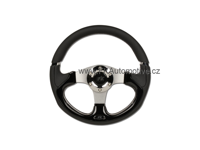 Sportovní volant, černá kůže + kovový design, průměr 320mm.