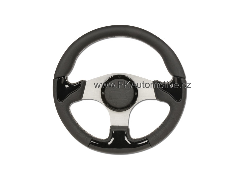 Sportovní volant, černá kůže + kovový design, průměr 345mm.