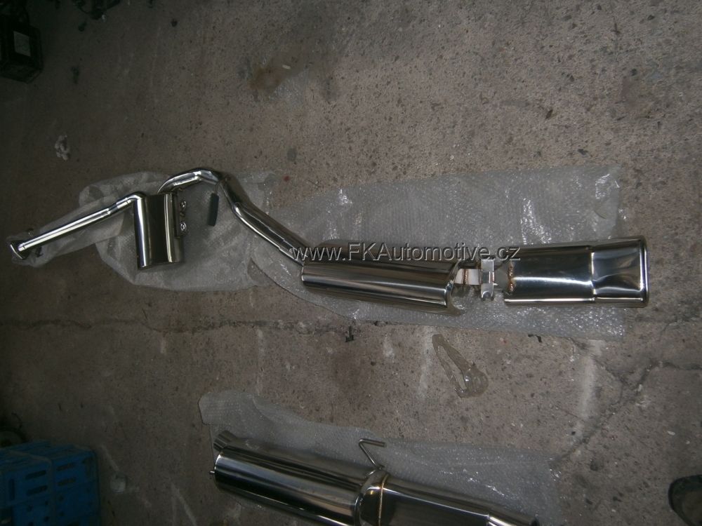 Sportovní výfukový systém na Opel Calibra r.v. 90-97. Nerezový kvalitní materiál, leštěné, průchozí, super zvuk. Poslední a předposlední díl + připojovací trubky. Včetně upínacích spon. Koncovka 70x140mm DMT. Cena je za sadu.