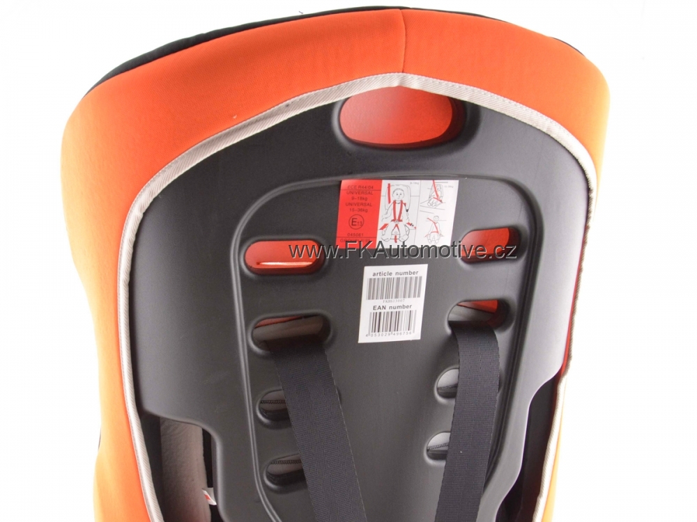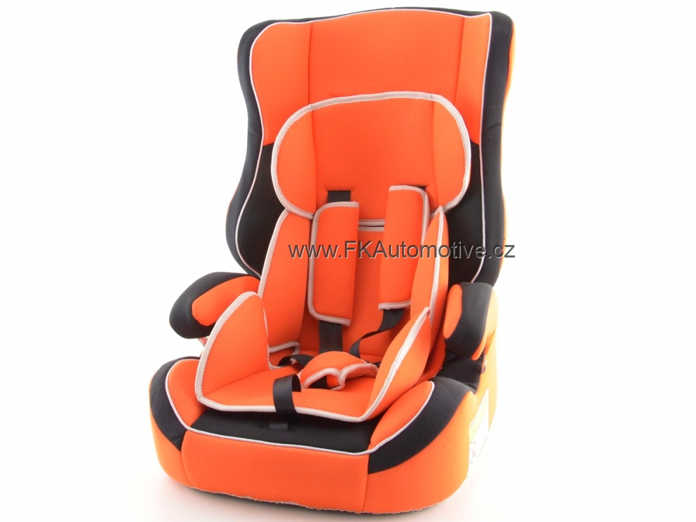 Dětská autosedačka, kategorie: I + II + III (1 až 12/9 až 36 kg), oranžová barva, splňuje normu ECE R44/04, rozměr: 430x470x710mm, materiál plast/polyester, včetně 3bod pásů, vložky pro menší děti. Lze použít pro děti 9-18kg za použití 3bod. pásů, nebo pro děti 15-36kg za použití pásu z vozidla nebo po demontáži horní části jako samostatný podsedák.