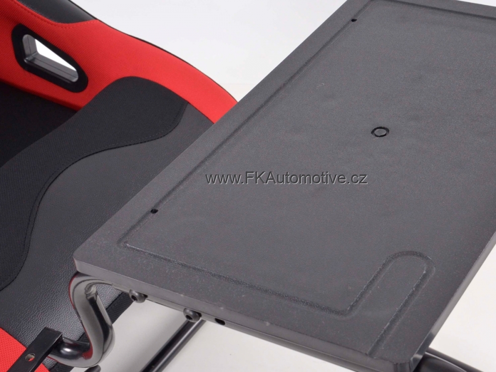 Závodní simulátor (sedačka) pro herní konzoli, set sedačky + rámu na uložení konzole, volantu, pc atd. Barva černo-červená, látková sedačka, lakovaný černý rám.