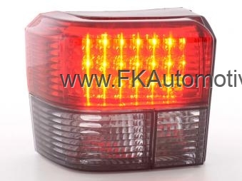 Zadní tuningová světla LED na VW Bus T4 r.v. 91-04, červeno-tmavé pozadí, homologace E. Cena je za pár.