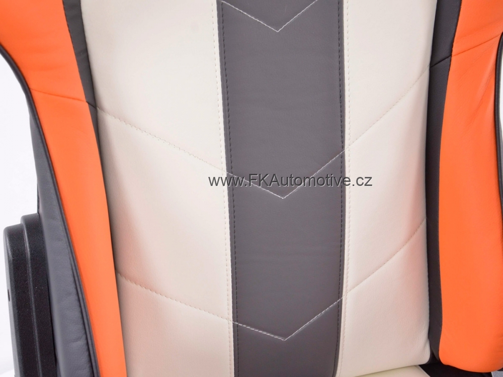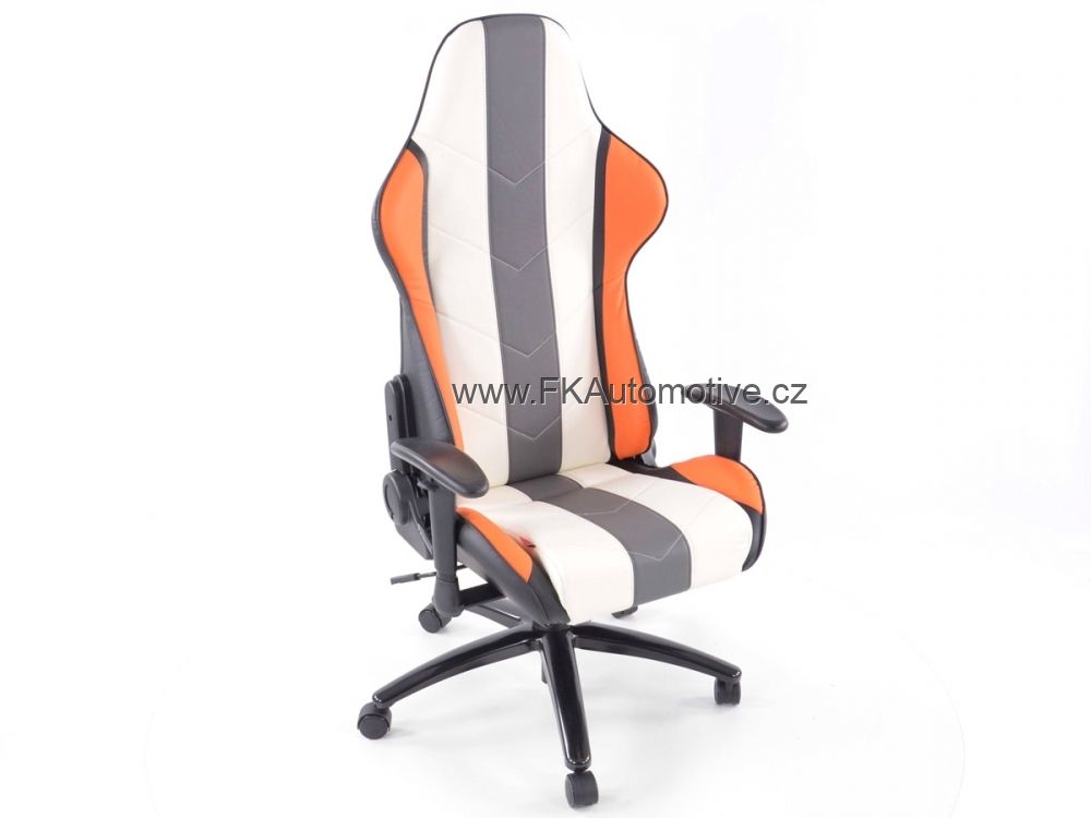 Sportovní kancelářská židle s opěrkami pro závodní pocit v kanceláři, materiál polokůže, nastavitelná výška opěradla, barva šedá, bílá + oranžová, včetně područek. Max. nosnost 150kg
