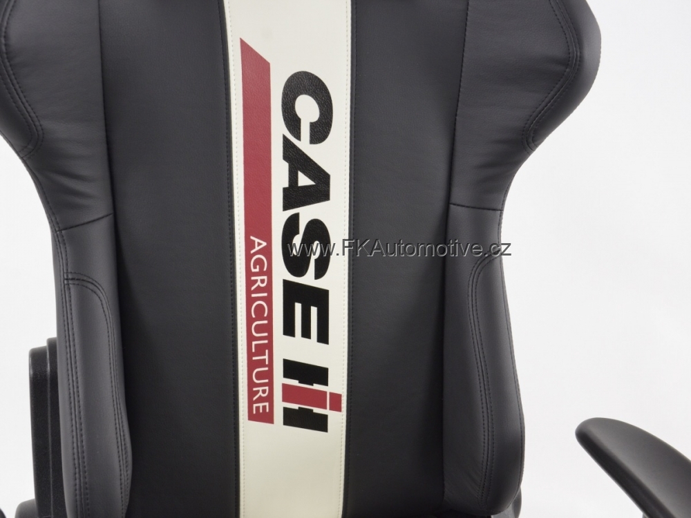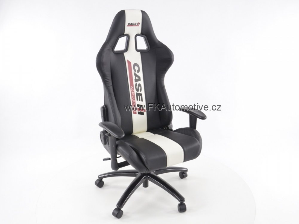 Sportovní kancelářská židle s opěrkami pro závodní pocit v kanceláři, materiál polokůže, nastavitelná výška opěradla, barva černá+bílá + logo, včetně područek. Max. nosnost 150kg