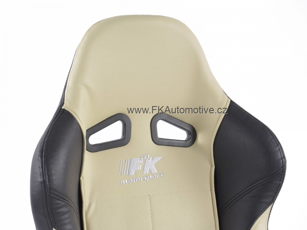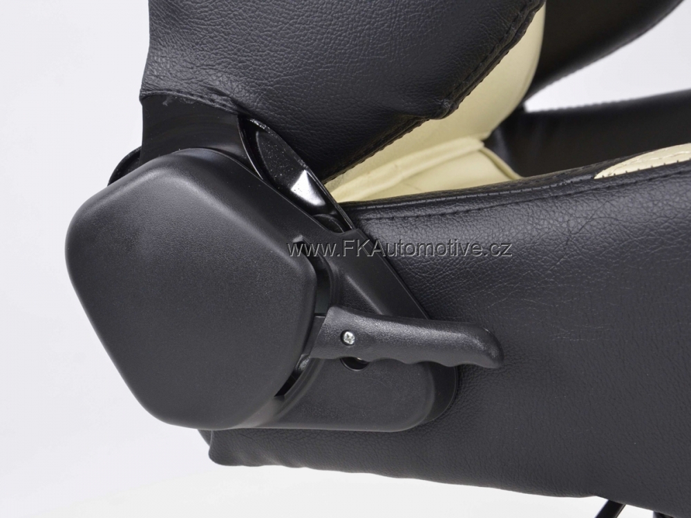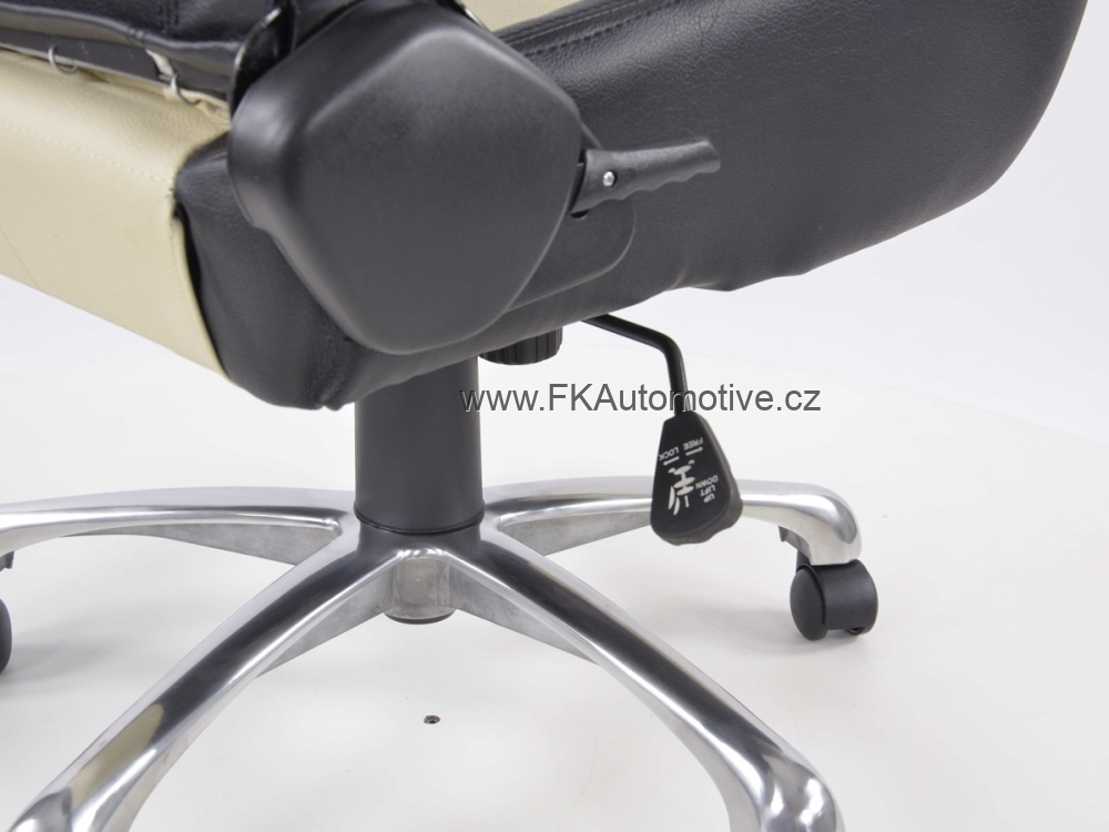 Sportovní kancelářská židle pro závodní pocit v kanceláři, materiál polokůže, nastavitelná výška opěradla, barva černá+béžová, včetně područek. Max. nosnost 150kg, chromovaná základna.