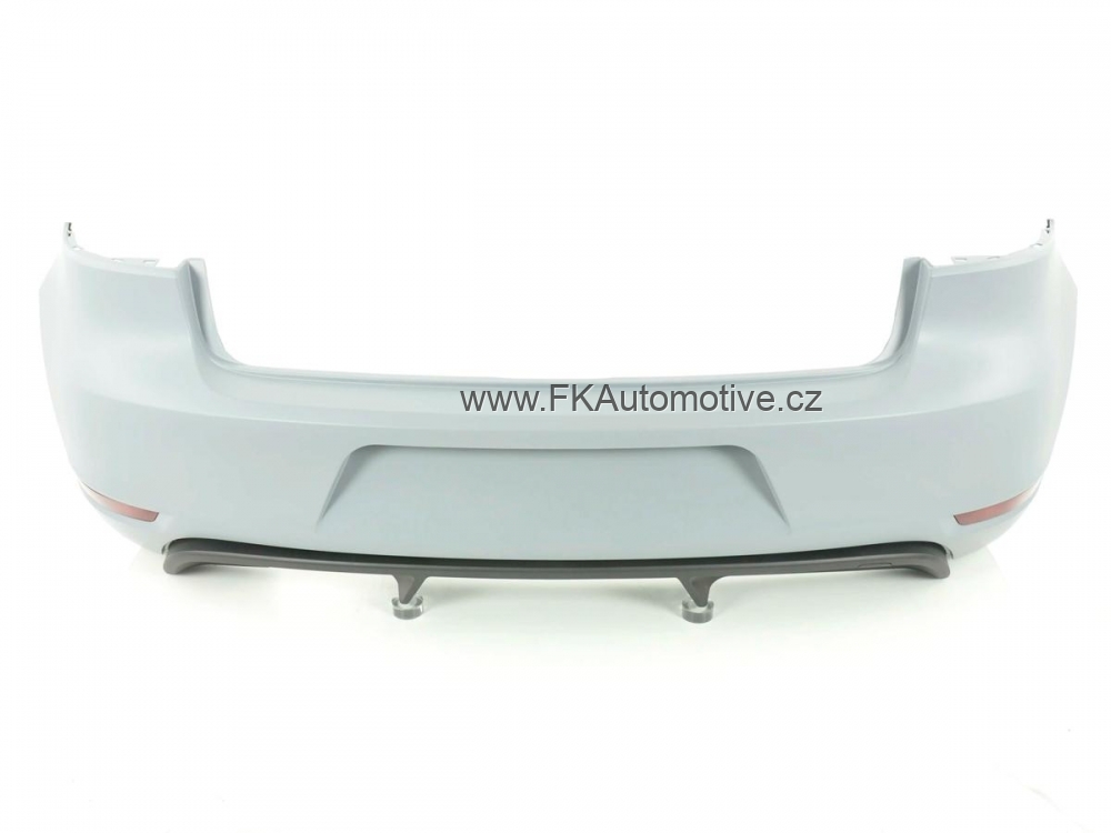 Zadní tuningový nárazník na VW Golf 6 r.v. 09-11, homologace E, kvalitní z plastu, připravený pro lak, včetně odrazek, vlevo výřez na výfuk.