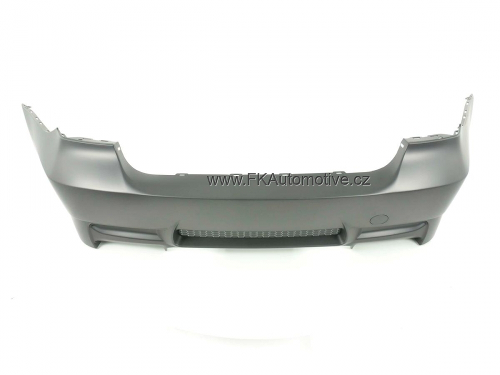 Zadní tuningový nárazník na BMW E90/E91 r.v. 05-08, homologace E, kvalitní z plastu, připravený pro lak, s park. senzorem, výřez na výfuk na obou stranách.