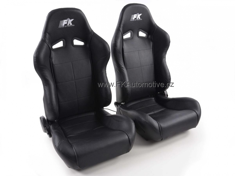 Sportovní sedačky Comfort, černé, polokůže, s masáží a výhřevem k zapojení, bez homologace, délka konzole 400mm, universální, sklopná a polohovací. Cena je za pár.