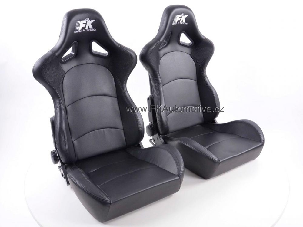 Sportovní sedačky pravá + levá strana, černá barva, sklopná-polohovací, polokůže, zadní díl laminátová skořepina. Cena je za pár. Délka konzole 350mm.