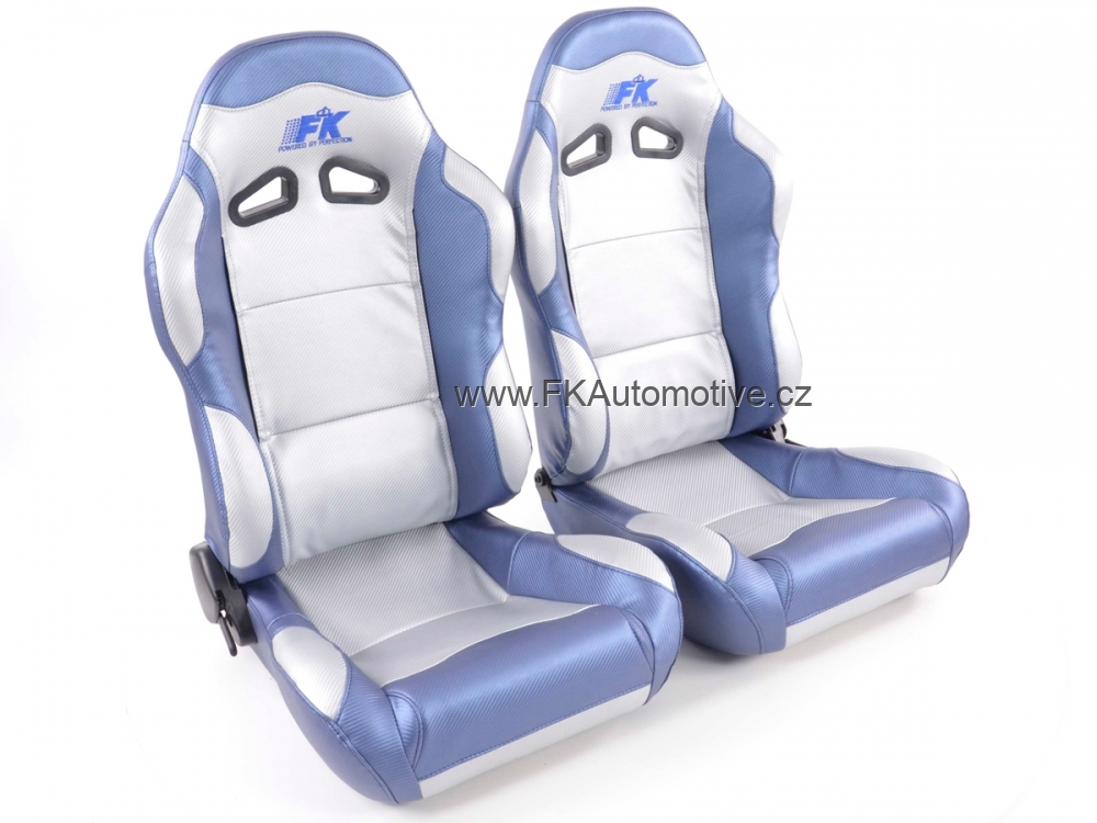 Sportovní sedačky Spacelook, levá + pravá strana, modro-stříbrná barva, sklopná-polohovací, polokůže, karbonový vzhled, velmi dobře omyvatelná. Cena je za pár. Délka konzole 400mm.