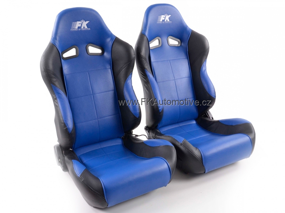 Sportovní sedačky Comfort, modré, polokůže, s masáží a výhřevem k zapojení, bez homologace, délka konzole 400mm, universální, sklopná a polohovací. Cena je za pár.