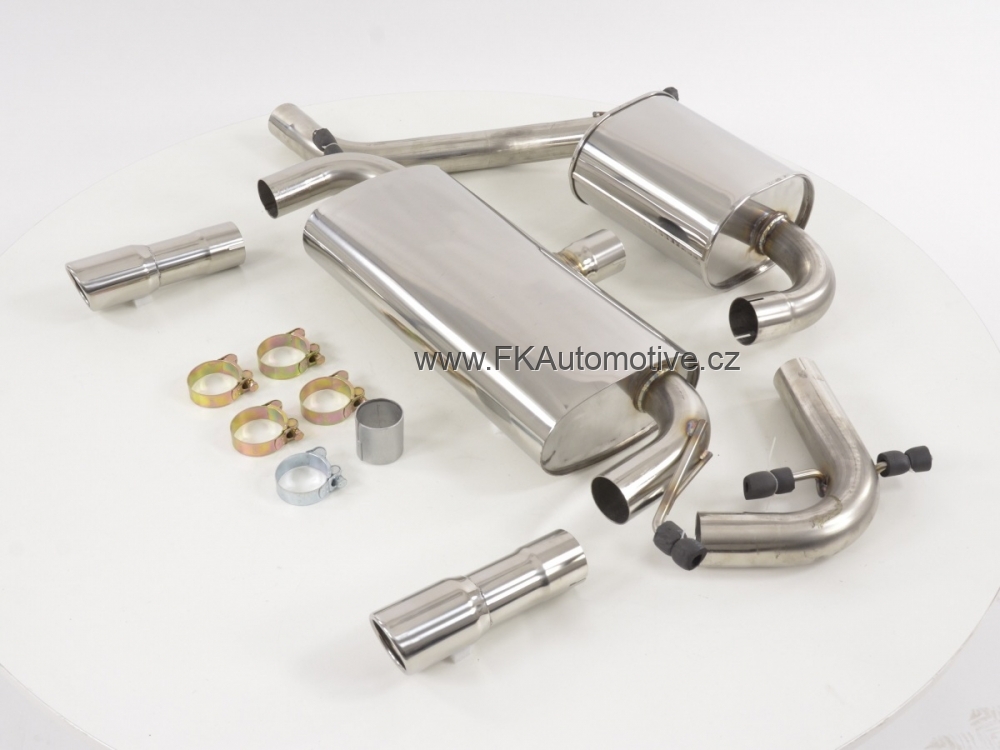 Sportovní výfukový systém na VW Golf 5/6 od r.v. 04-, na motor 1,4TSI / 1,4TSI GT / 2,0TFSI / GTI / GTI Edition 30, nerezová ocel, silný zvuk a sportovní vzhled, přesně padnoucí, koncovka výfuku 2x76mm L+P. Cena za komplet sadu.
