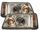 Přední světla Angel Eyes na VW Vento r.v. 92-98, pozadí modrý chrom. Homologace E. Cena je za pár.