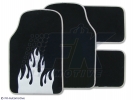 Látkové tuning koberce, design plameny, černo-stříbrné, 2x přední a 2x zadní, universální. Cena je za sadu.